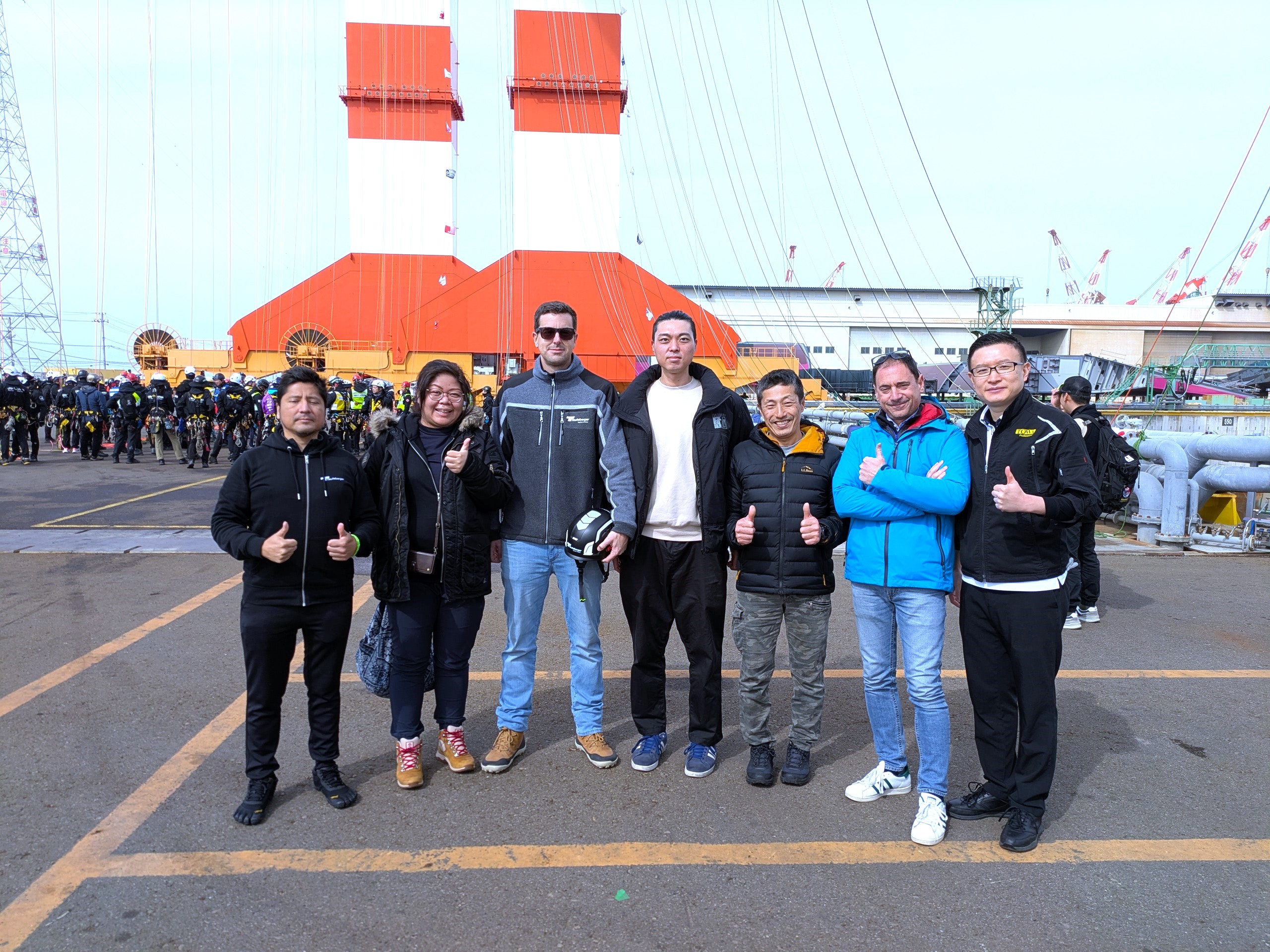 圧倒的スケールの会場で行われた競技は、高さ100Mのクロスホールレスキュー、そして幅80Mのテンションラインレスキューです。